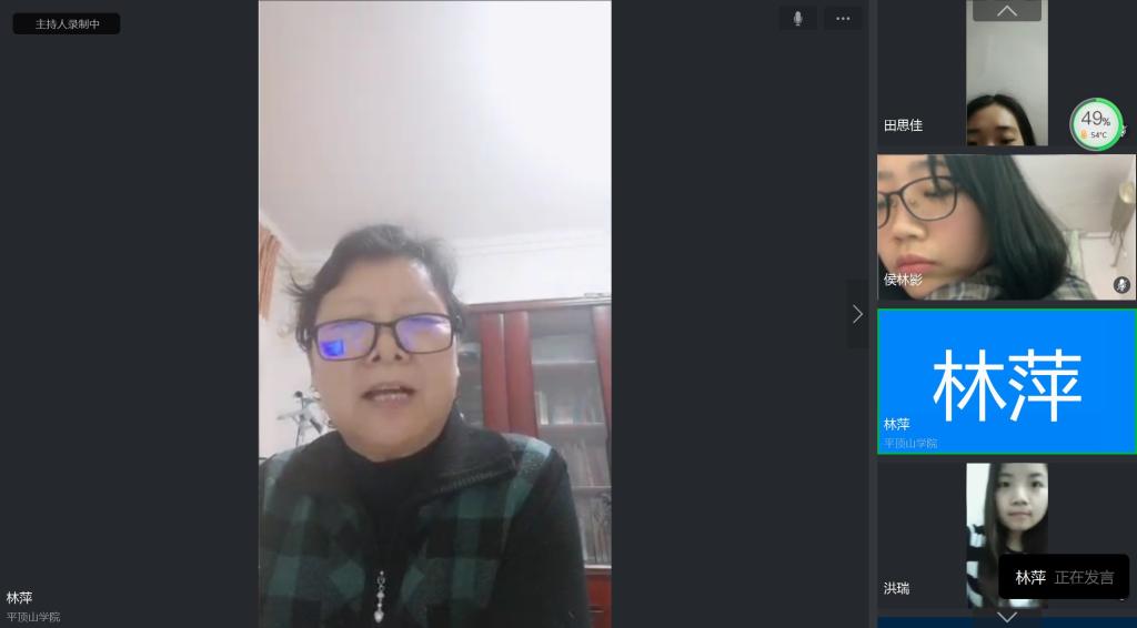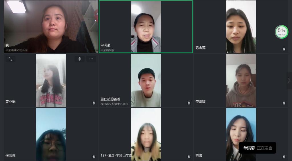 单满菊书记首先向大家介绍了目前疫情防控形势下国家、河南省和我校毕业生就业工作的政策和安排以及我院毕业生目前就业情况,并对毕业求职就业过程中应该注意的方面进行了详细讲解。之后,同学们就疫情防控期间求职过程中所遇到的问题如选择合适的岗位、如何防范诈骗等向老师们提问。大家对同学们提出的问题和求职就业中的困惑进行了一一解答,并鼓励同学们积极转变就业观念——先就业再择业,同时也要注重自身综合能力的提升。班会气氛热烈活跃,同学们积极参与互动。随后,两名已就业的学生2016级翻译专业(英语)平佳佳和翻译专业(西班牙语)姜亚娟向大家们分享了她们求职的经历,包括简历制作与投递、线上面试注意事项等,让参会的毕业生有了更加直观充分的了解。