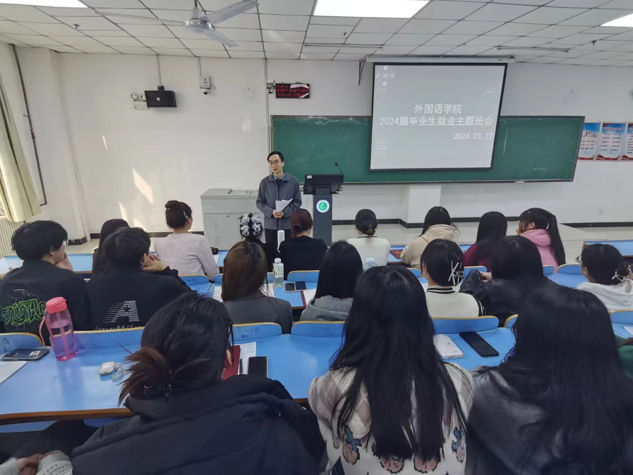 为扎实做好2024届毕业生就业指导与准备工作,充分调动毕业生就业积极性,3月22日下午,122cc太阳成集团于线下召开了2024届毕业生第二次就业主题班会。本次主题班会由122cc太阳成集团党委书记甘泉和2020级辅导员黄硕主讲,122cc太阳成集团2024届毕业生参加。