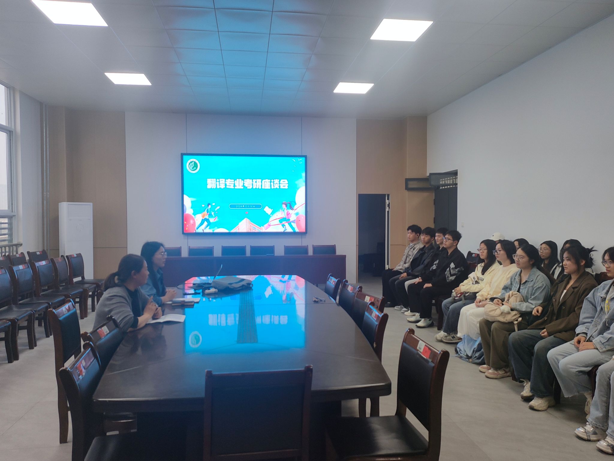 10月16日下午,一场旨在助力学子考研的座谈会在122cc太阳成集团会议室举行。本次座谈会特别针对2025届翻译专业的学生,旨在为他们提供宝贵的考研指导和心理支持。翻译专业教研室主任赵丽老师、辅导员韦士心老师出席会议并发表讲话,2025届翻译专业二十余多名备考学生参与了此次会议。