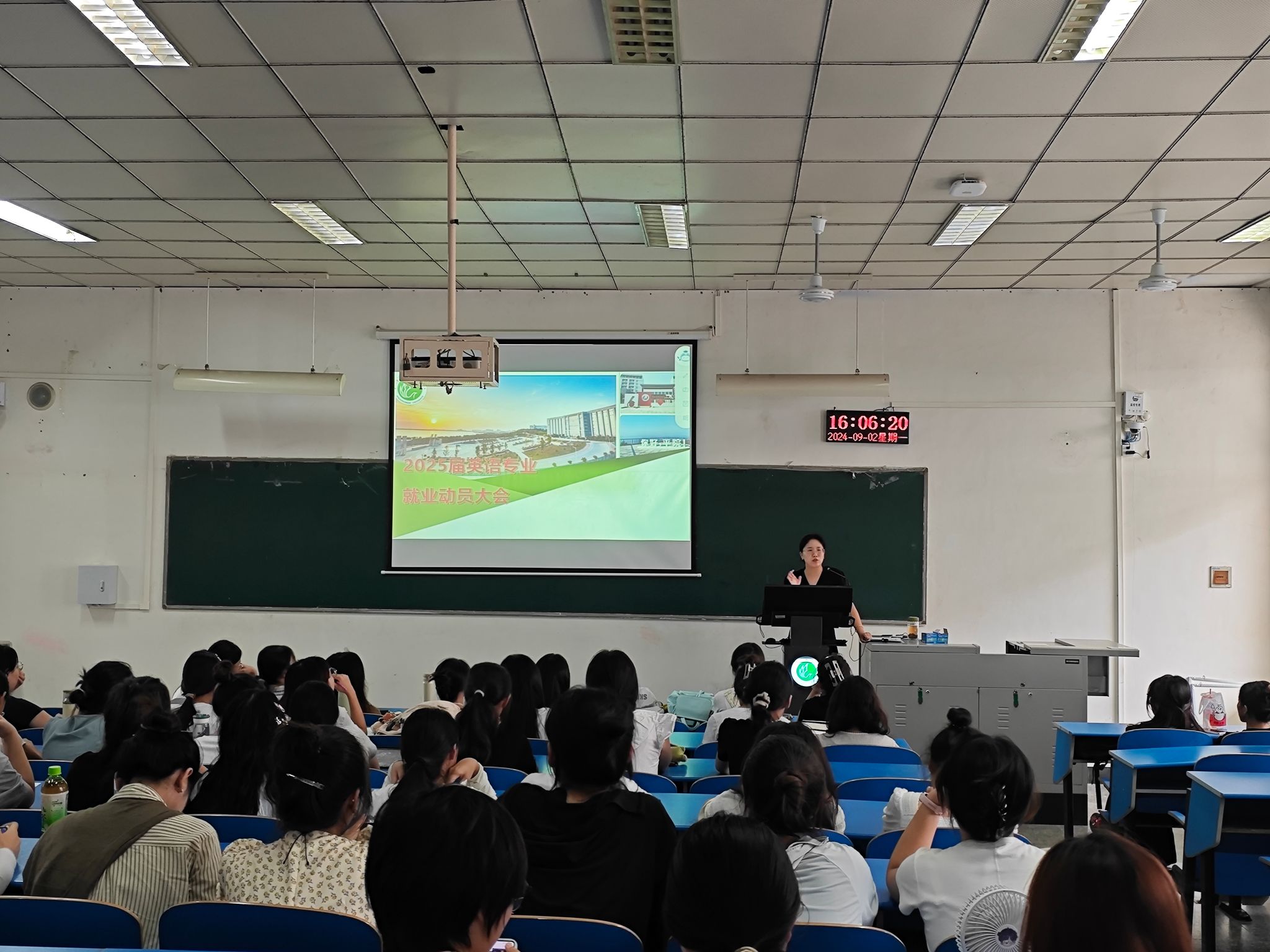 会议伊始,韦士心回顾了近三年学院毕业生的就业情况,并分析了当前就业市场的挑战与机遇。她讲到,面对复杂多变的就业形势,同学们要不断提升自身技能,积极提高求职意识,及早规划职业生涯,实现高质量就业。接着,韦士心从如何明确自身就业定位、积极参加招聘活动、增强就业防范意识三方面展开进行了详细地讲解。在增强就业防范意识方面,她强调到,在职场中脱颖而出不仅需要具备扎实的专业知识和出色的办公、沟通等技能,同时,在遇到就业纠纷或者权益受损时,也需要善于运用法律武器来保护自己,确保自己的权益得到充分保障。最后,韦士心为同学们讲解了求职过程中常见的问题和应对策略,并针对同学们提出的问题作出了耐心的解答,帮助同学们更好地应对未知的挑战,为同学们未来的职业生涯筑牢坚实基础。会议结束后,同学们纷纷表示,此次动员大会让自己对当前的就业形势和政策有了更加清晰的认识,在接下来的学习和生活中,自己将不断提高个人综合素质和专业能力,为今后就业做好充分准备。