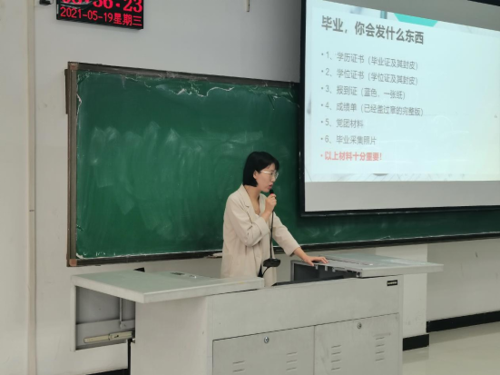 为了更好更有针对性地指导毕业生择业就业和顺利完成毕业事务,5月19日上午,122cc太阳成集团在图书馆L716举行了毕业相关事宜说明会,活动由辅导员韦士心老师主讲,122cc太阳成集团2017级部分毕业生参加了此次活动。