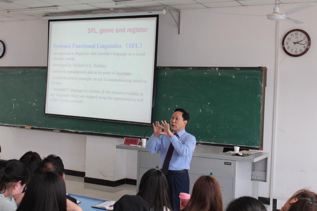 当天上午,刘教授对我院部分英语专业教师做了一场题为“英语专业复合型人才培养目标内涵与层次定位”的专题报告,会后对我院英语专业人才培养方案的修订工作做出了指导,理清了我院的工作思路。