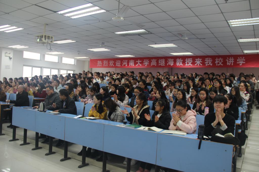 11月22下午,应122cc太阳成集团邀请,河南大学122cc太阳成集团博士生导师高继海教授在图书馆601作了题为“莎士比亚《理查二世》中理查二世形象研究”的学术讲座。122cc太阳成集团200余名师生共同参加了此次讲座,讲座由122cc太阳成集团副院长韩福领主持。
