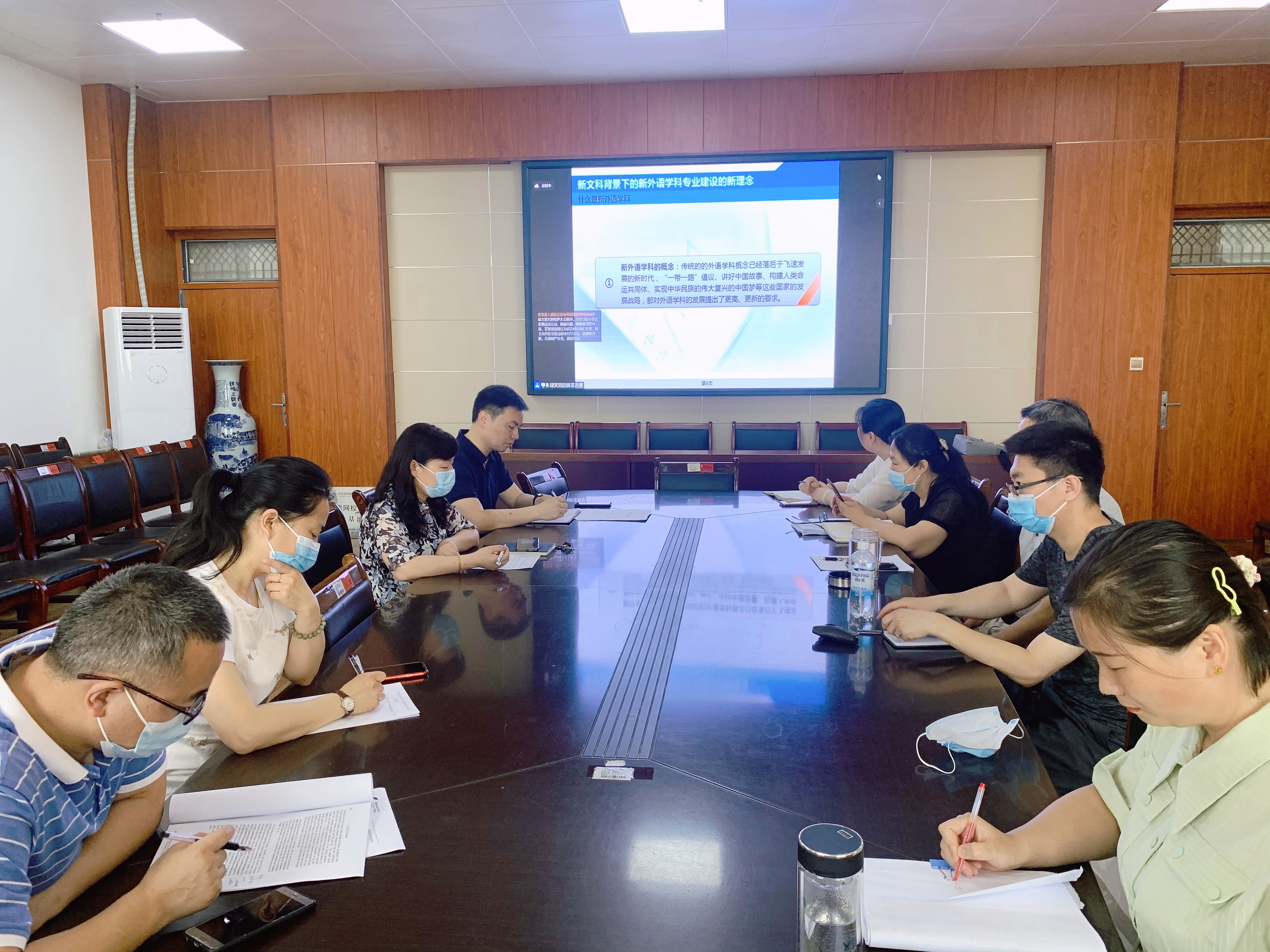 2022年6月6日上午,应122cc太阳成集团邀请,洛阳理工学院原副校长、博士生导师邱天河教授通过腾讯会议为我院师生作线上学术报告,报告题目为“对新文科背景下外语学科专业建设的几点思考”。“英语语言文学”重点培育学科骨干成员到L708会议室集中收听收看,其余师生在线收听收看了本次学术报告。