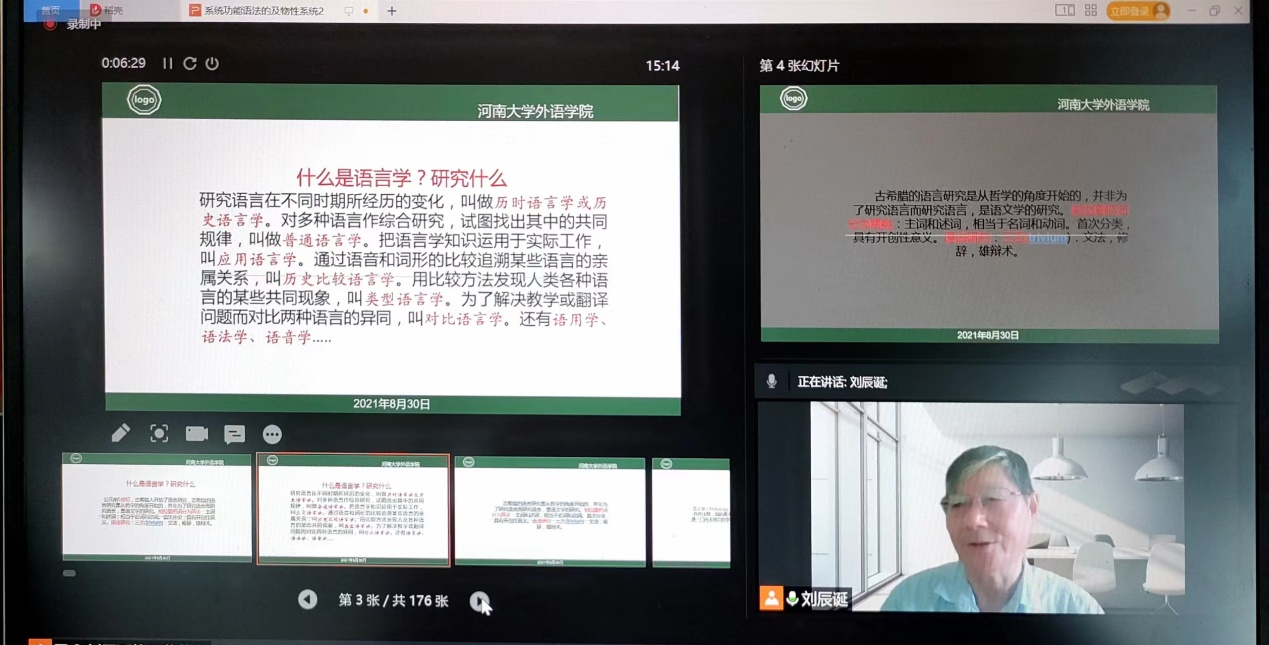 9月8日下午,根据122cc太阳成集团学术活动安排,刘辰诞教授通过腾讯会议,为我院师生作题为“系统功能语法的及物性系统”的学术报告。我院部分教师在图书馆L708集中参加,19级、20级、21级学生线上参加了此次报告会。报告会由122cc太阳成集团副院长丁超峰主持。